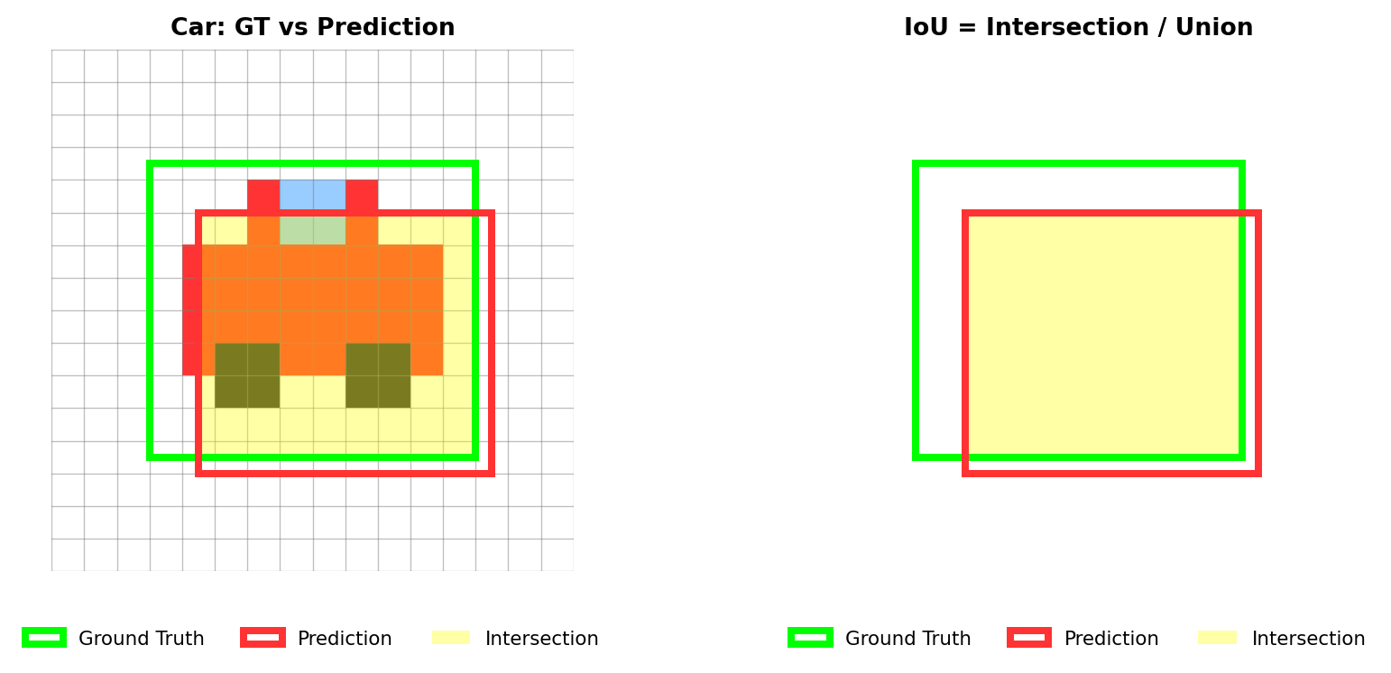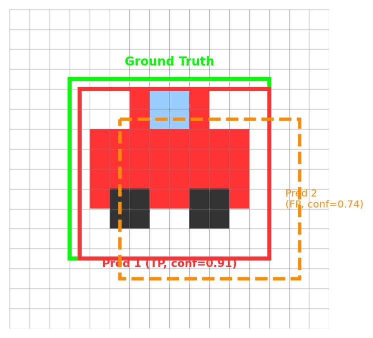 Rule of Thumb: A prediction is typically considered a “True Positive” (correct) if the IoU is > 0.50.